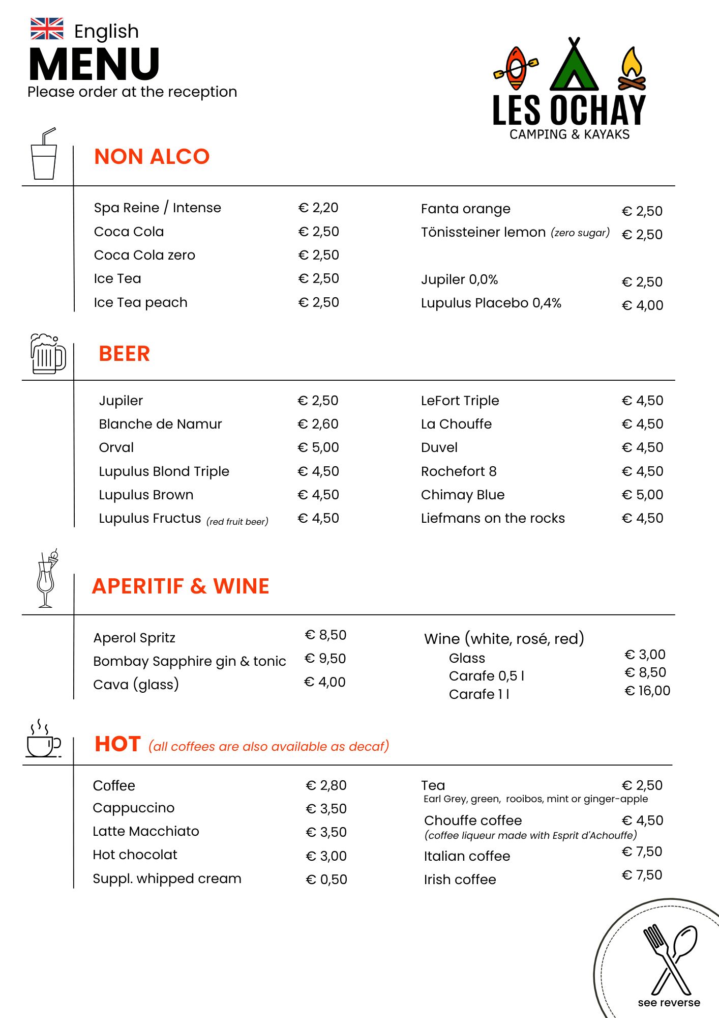 Lust auf ein erfrischendes Getränk nach einem schönen Spaziergang oder einen kleinen Hunger? Hier finden Sie unsere Menükarte!